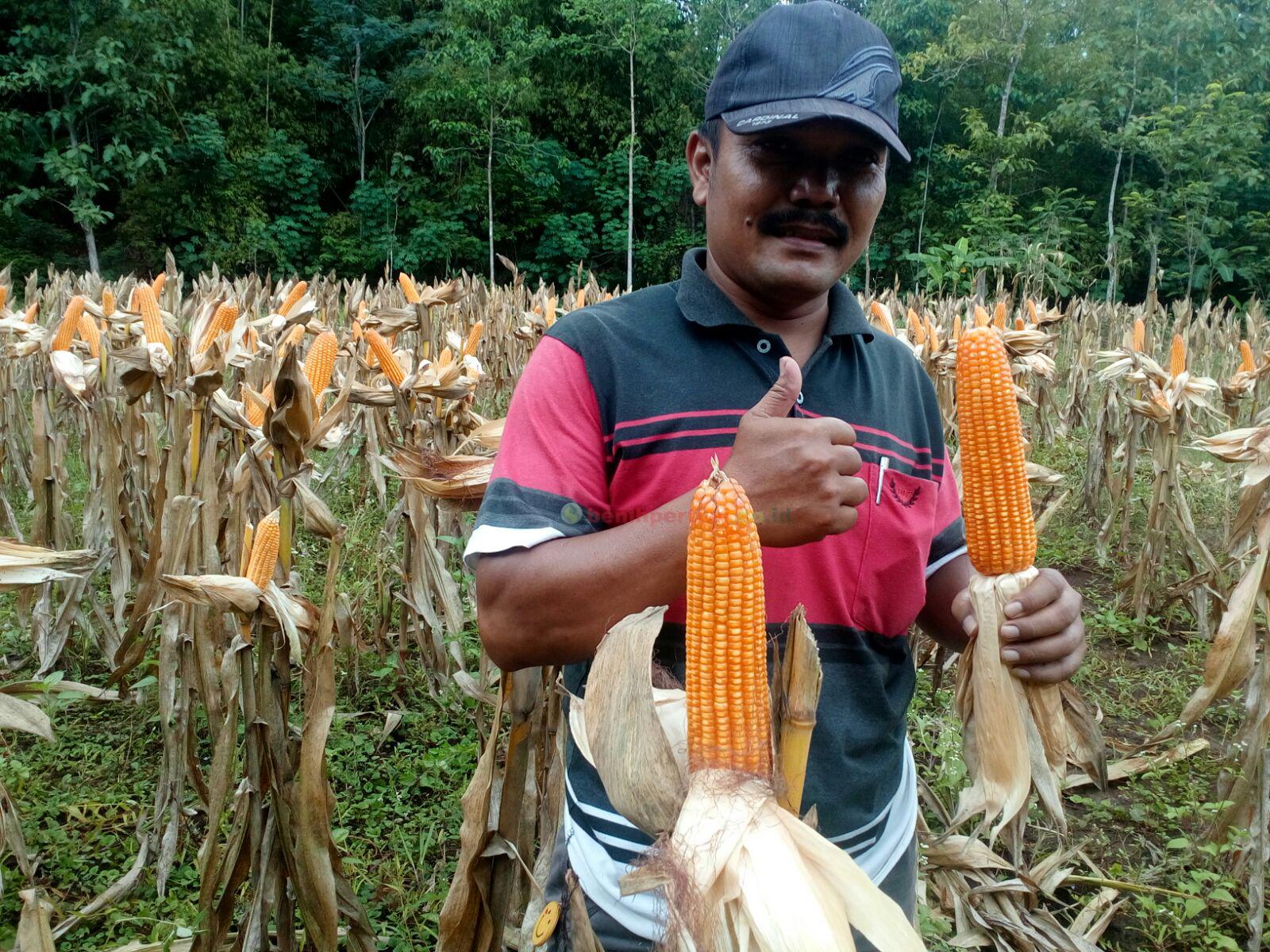 Nampak para anggota kelompok bisa membuktikan karakter jagung Pertiwi 2 dengan tongkol panjang, tahan bulai (bisa dilihat dari keutuhan populasi tanaman) dan kekokohan batang dari Jagung Pertiwi 2 (Agronomist: Dedy Surya Nugraha)